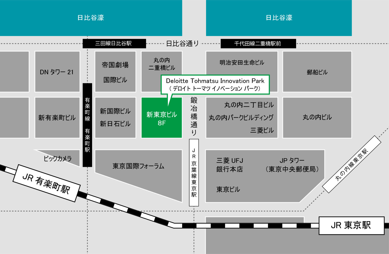 地下鉄有楽町駅 D5出口より徒歩3分 地下鉄千代田線 二重橋前駅 出口1より徒歩2分 JR京葉線 東京駅B1F 地下コンコース出口6より連絡 JR東京駅 丸の内南口より徒歩5分 |