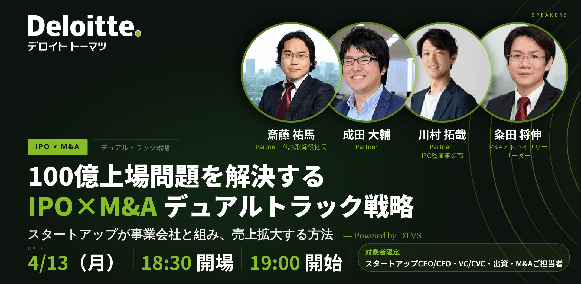 ¥¹¥¿¡¼¥È¥¢¥Ã¥×CEO¡¿CFO¡¢VC¡¿CVC¡¢»ö¶È²ñ¼Ò½Ð»ñ¡¦M&A¤´Ã´Åö¼Ô ¡Ê¢¨ËÜ¥»¥ß¥Ê¡¼¤Ï¾åµ¤ÎÊý¤Ë¸ÂÄꤷ¤¿¥¯¥í¡¼¥º¥É³«ºÅ¤Ç¤¹¢¨¡Ë |
